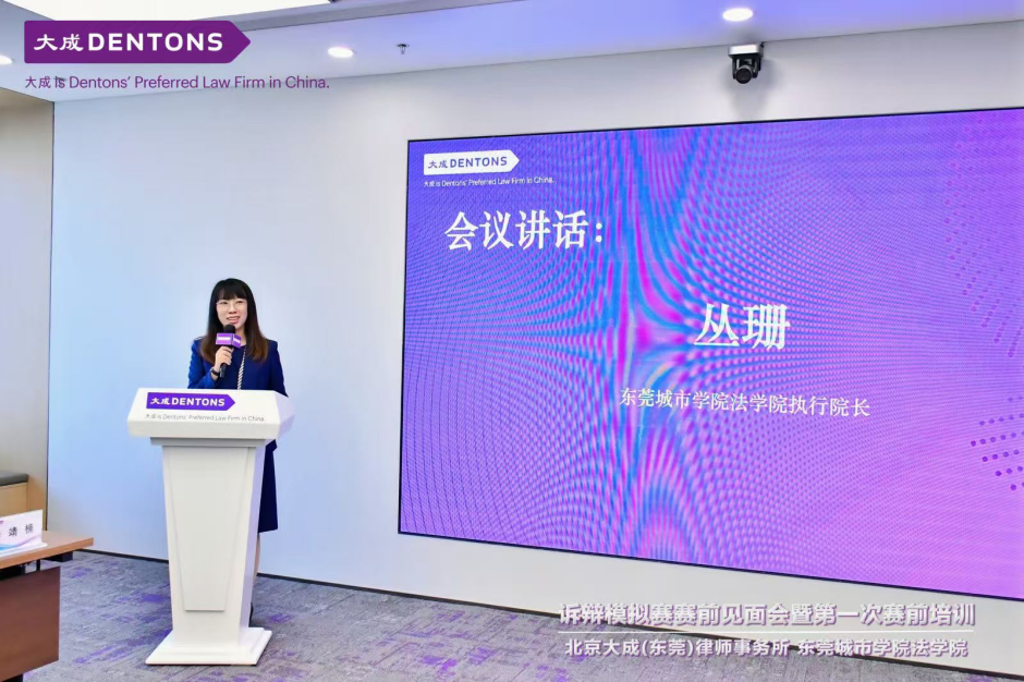 2025年11月25日下午,beat365英国官方网站法学院与北京大成(东莞)律师事务所顺利举办争议解决诉辩模拟赛赛前见面会暨第一次赛前培训活动。beat365英国官方网站法学院执行院长丛珊,党总支书记、副院长姜虹,副院长付佳荣、法律系主任陈程、代表教师谢敏茹、陈土兴以及学生参赛人员,与北京大成(东莞)律师事务所高级合伙人、主任陈九波,高级合伙人刘春、石慧等多位专业律师齐聚一堂,共同开启本次诉辩模拟赛的备赛序幕。
