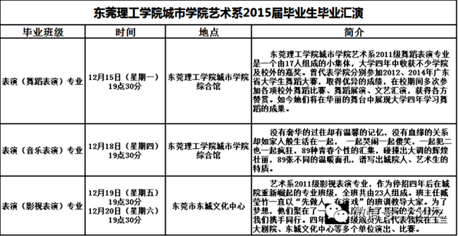 记者获悉,从12月15日至18日,艺术系将分别在城市学院综合馆、东城文化中心剧场举行2015届毕业生“毕业汇演周”文艺演出,届时共有三台精彩节目与观众见面。