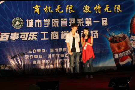 4月23日晚上8点,城市学院管理系第一届”百事可乐”工商模拟市场在饭堂前广场拉开了帷幕,院党委副书记朱冰、教务处处长邓成良、学生处处长章德胜等出席开幕式并剪彩。