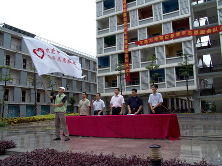 为纪念唐山大地震三十周年,共青团东莞市委员会、东莞市地震局、东莞市青年志愿者协会、东莞市卫生局团委、东莞理工学院团委在东莞理工学院松山湖校区共同举行东莞市志愿者服务队成立授旗仪式和地震应急医疗救护演练。我院12名红十字会志愿者及市有关单位500多名青年志愿者参加了成立仪式和救护演练。