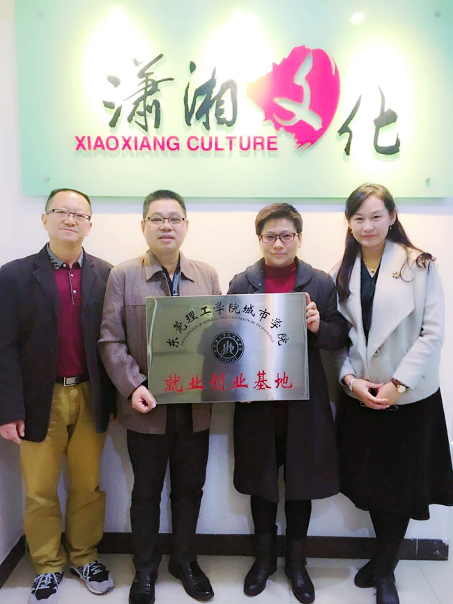 当日,创意设计学院党总支付书记何鹏举教授、就业中心主任江小卫、文学与传媒系党总支副书记苗琳来到东莞潇湘文化传播公司,受到该公司副总经理冯娅娟的热情接待,并就毕业生实习、实践、求职等方面进行洽谈,达成合作意向。