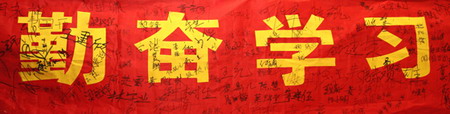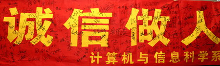 在这次会议之前,该系还在校园里挂出了 “勤奋好学、感恩父母、文明考试、诚信做人”为标题、有学生们亲笔签名的横幅。