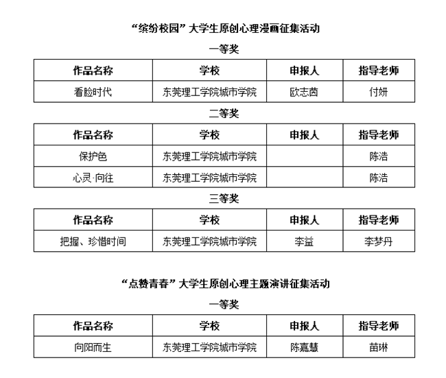 为加强高校心理健康教育工作,广东省教育厅于去年5月至9月在全省高校组织开展了“缤纷校园”大学生原创心理漫画征集活动、“激扬人生”大学生原创心理剧征集活动、“点赞青春”心理健康健康主题演讲征集活动等系列心理健康教育活动。