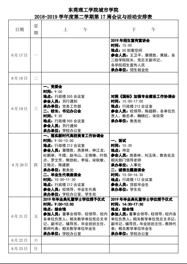 第17周会议与活动安排