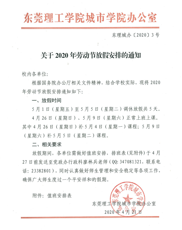 关于2020年劳动节放假安排的通知
