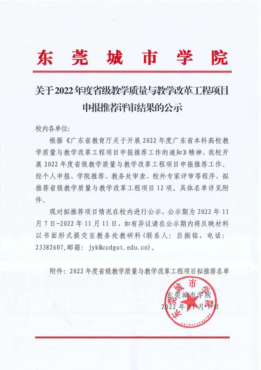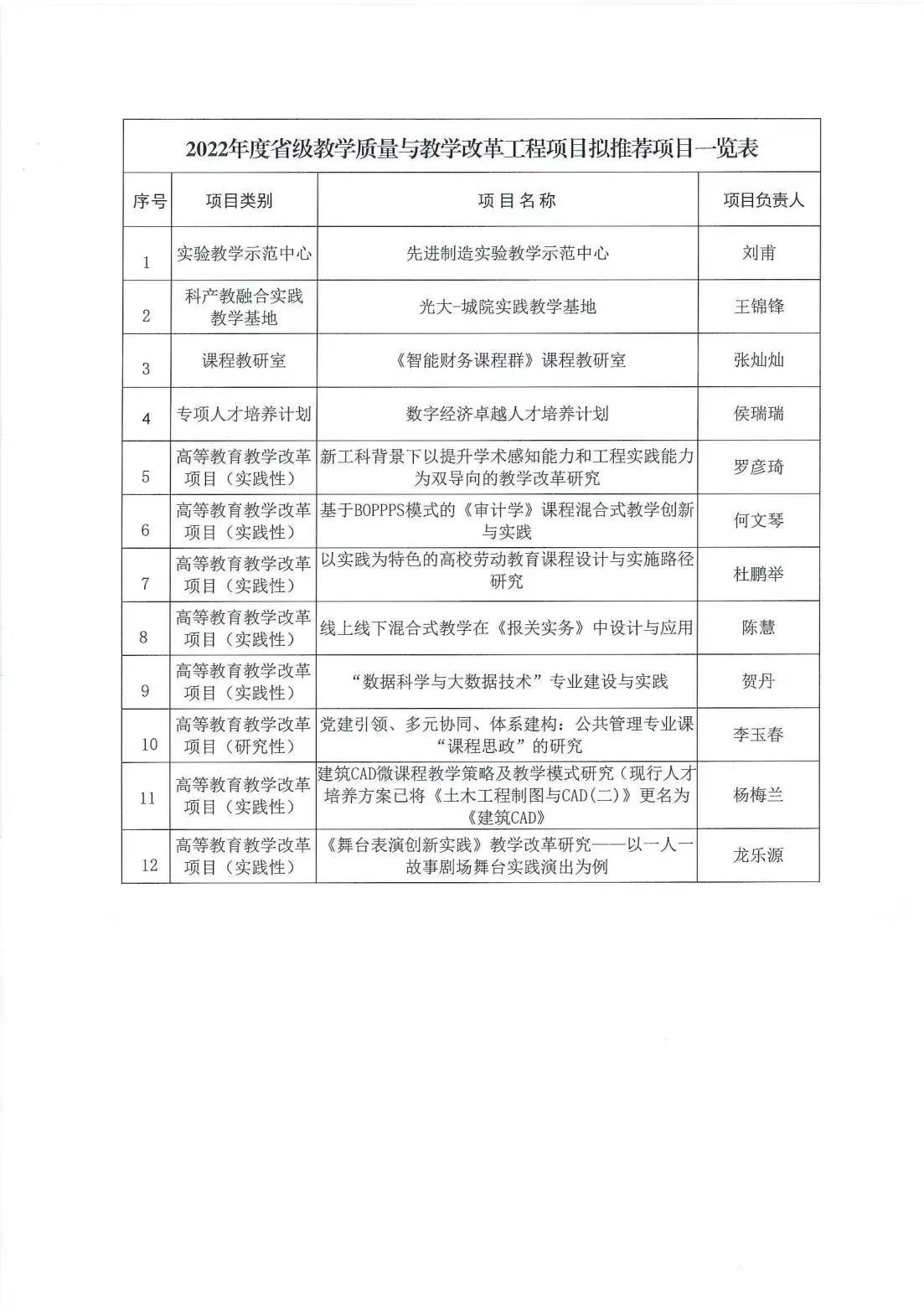 关于2022年度省级教学质量与教学改革工程项目申报推荐评审结果的公示