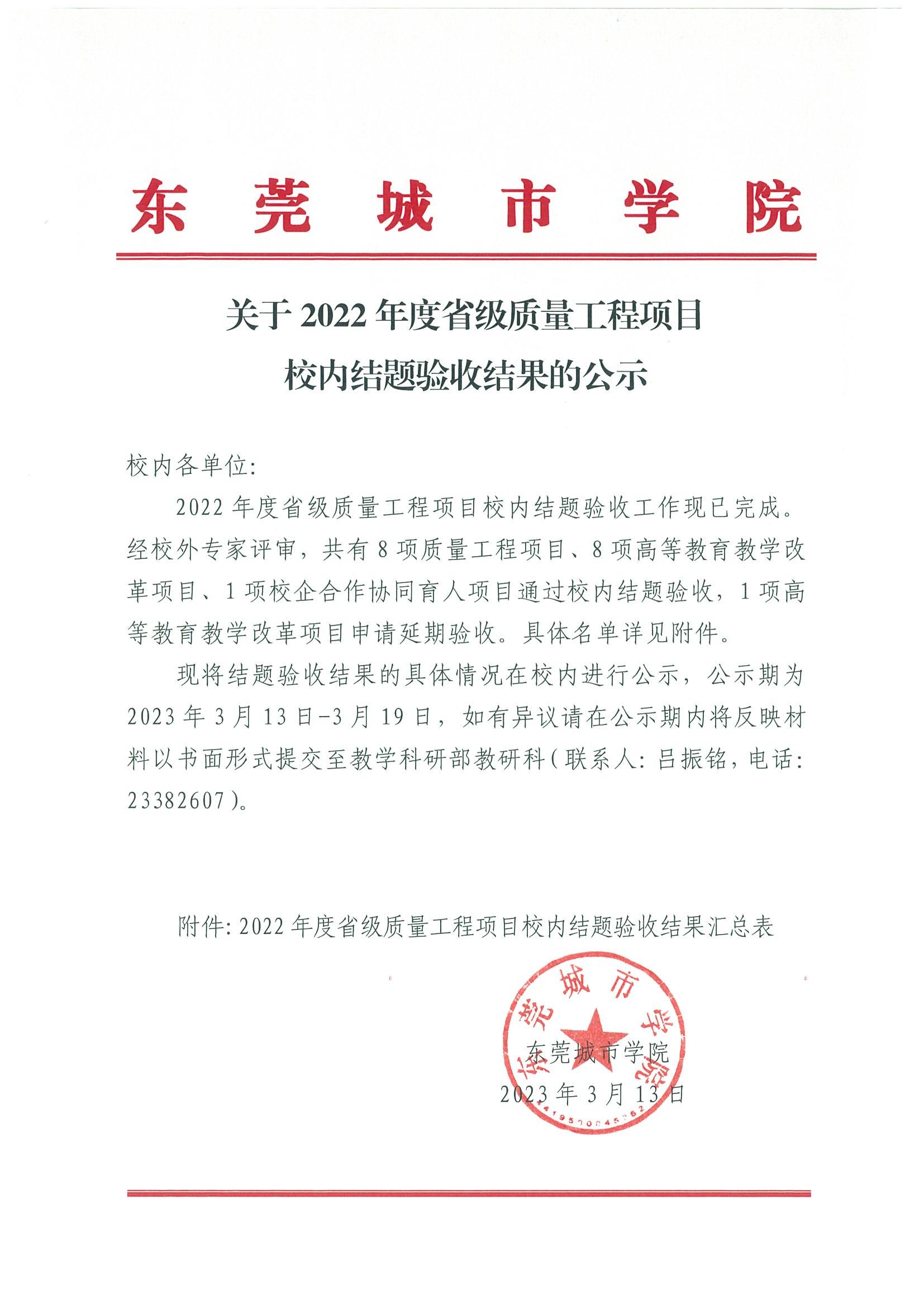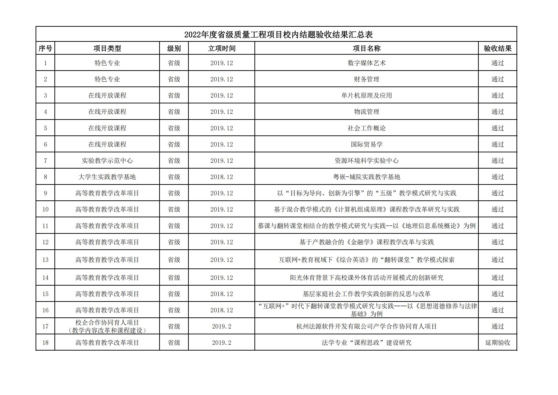 关于2022年度省级质量工程项目校内结题验收结果的公示